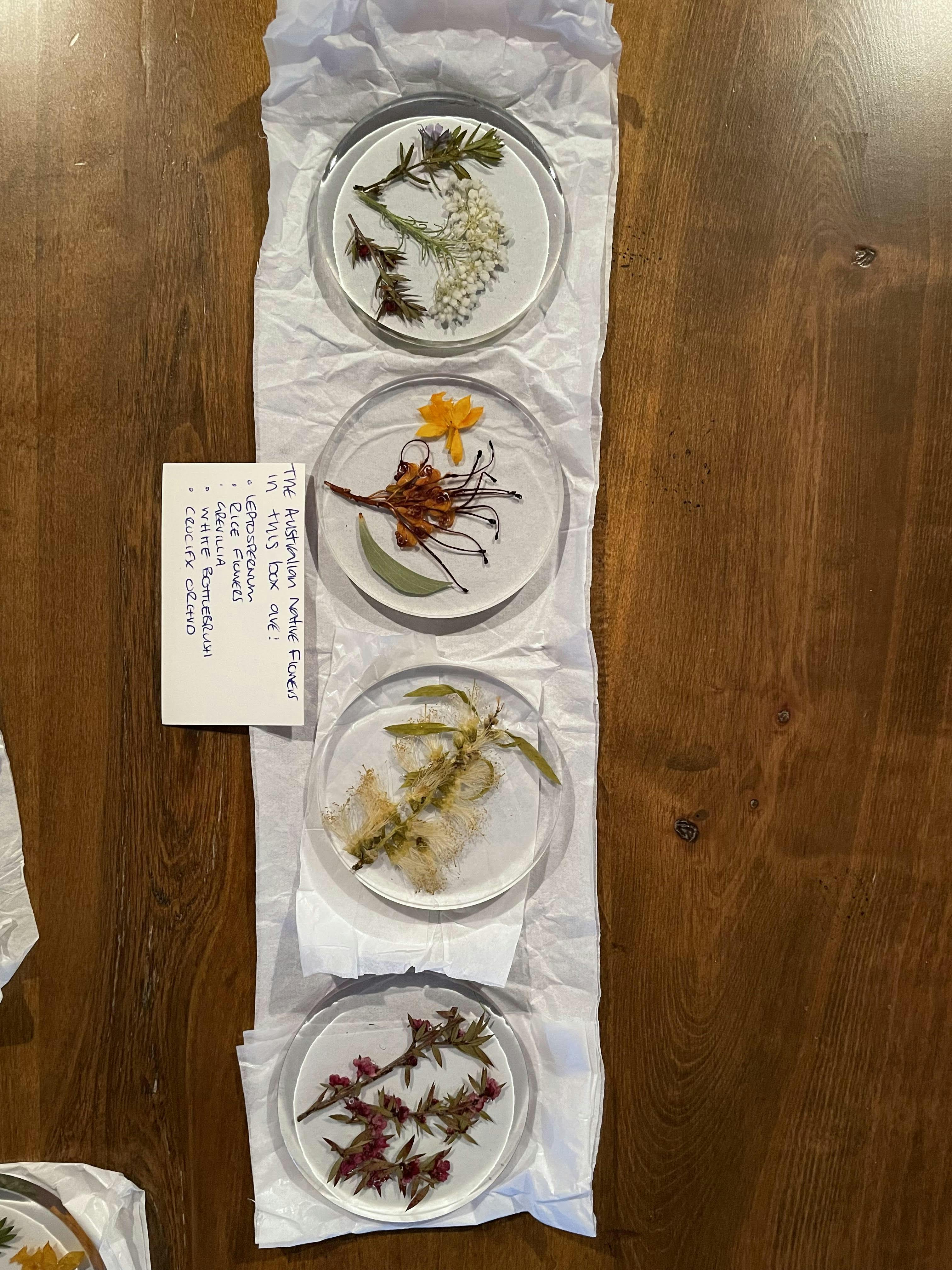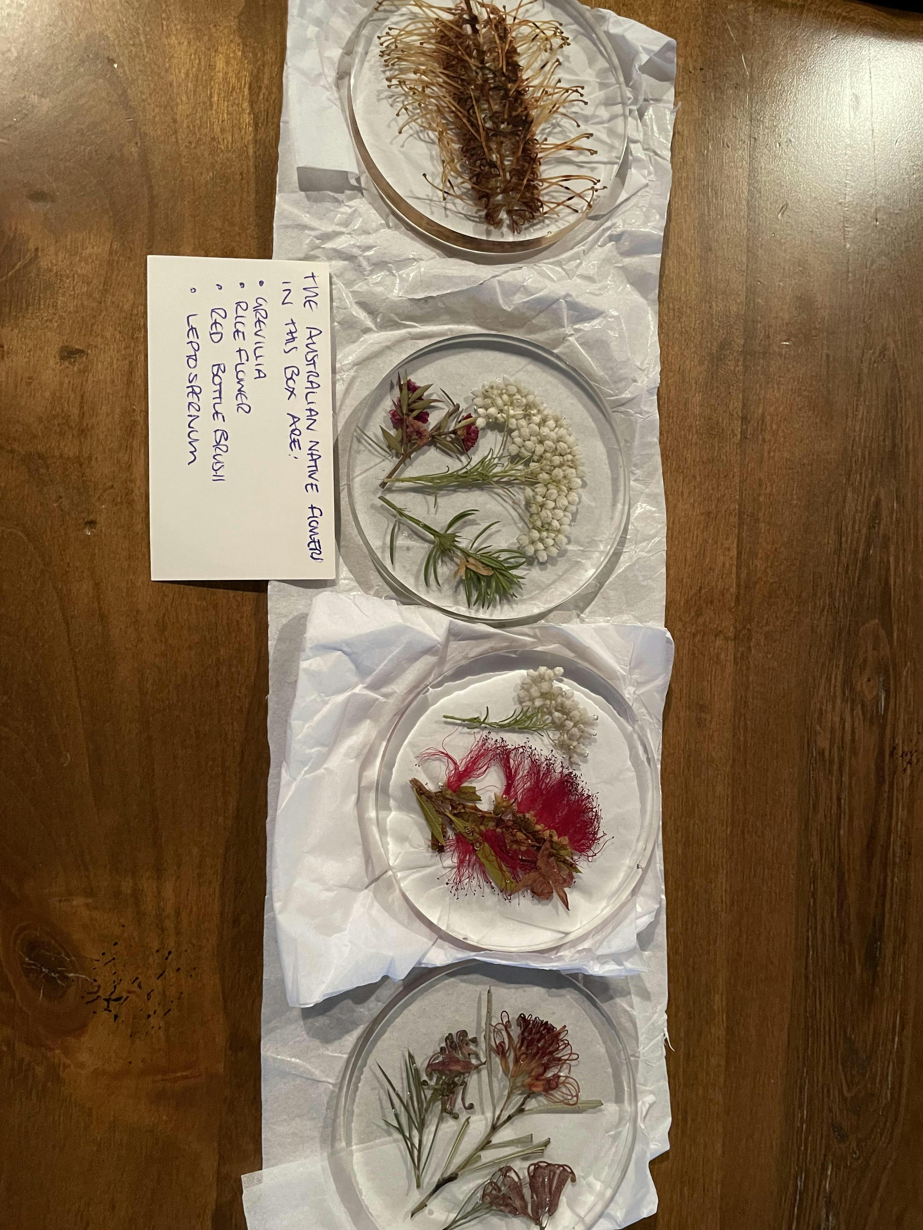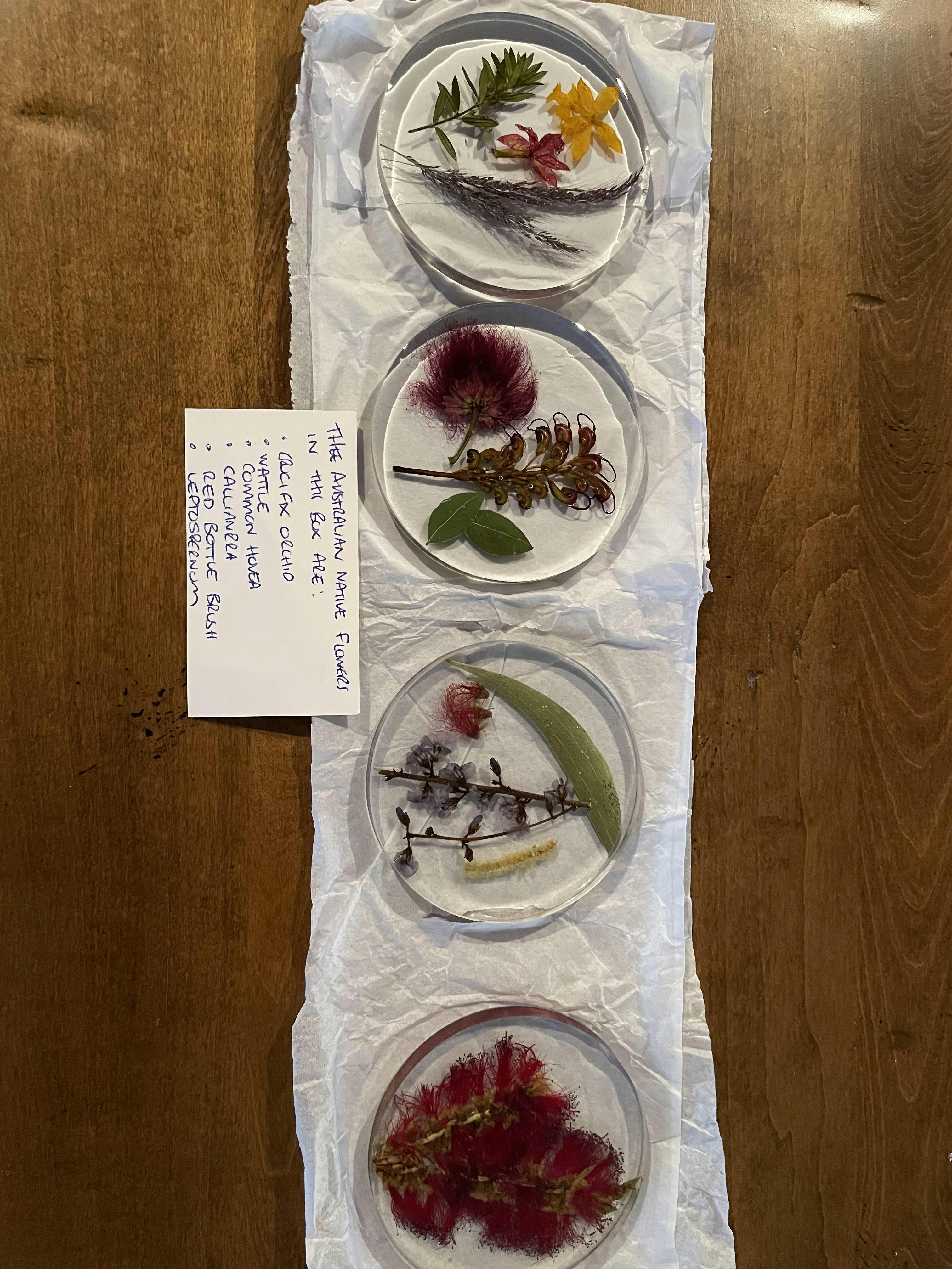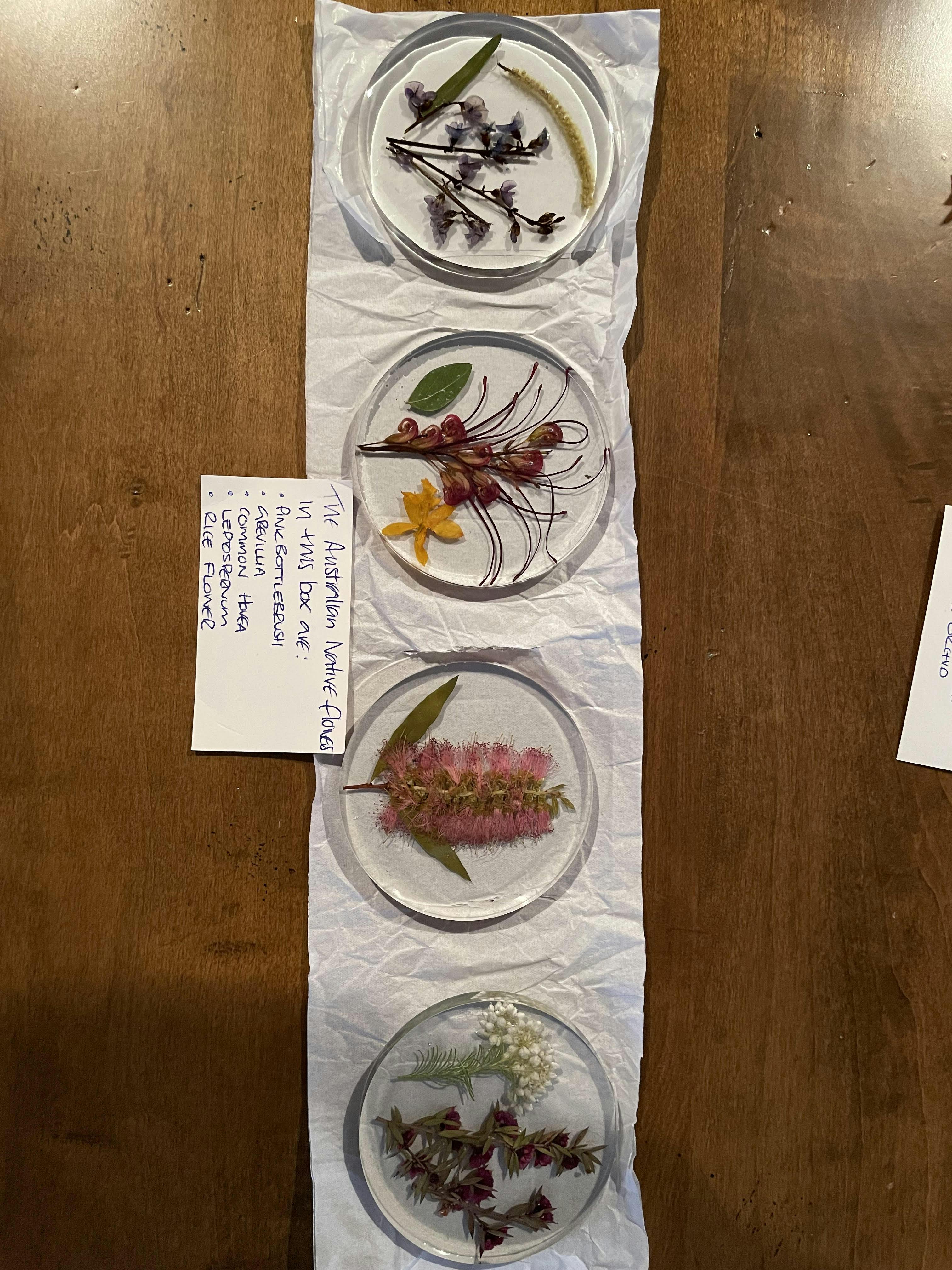During a family trip to the Gold Coast, I found these beautiful pressed flower resin coasters at a gift shop on Tamborine Mountain (A little touch of Australia on Gallery Walk). I bought the last set but wished there were more. After I returned to the US I found the Lustre & Leaf website and ordered more resin coaster sets to give away as gifts. Sandi created beautiful native botanical coasters and they were delivered in just a few weeks. So happy to these as a remembrance of our Australian trip.