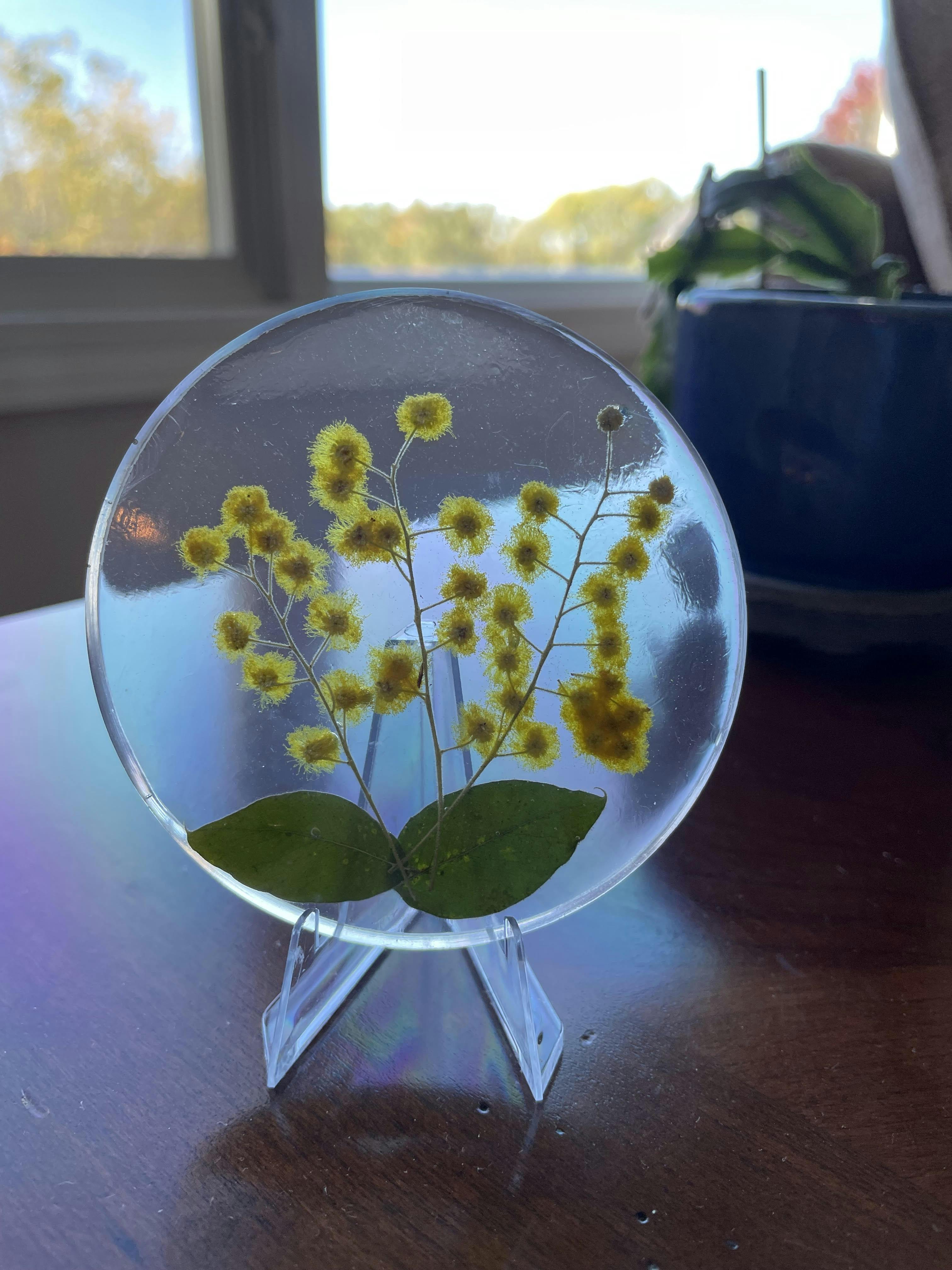 All blooms arre handpicked, pressed, and preserved in crystal-clear resin.