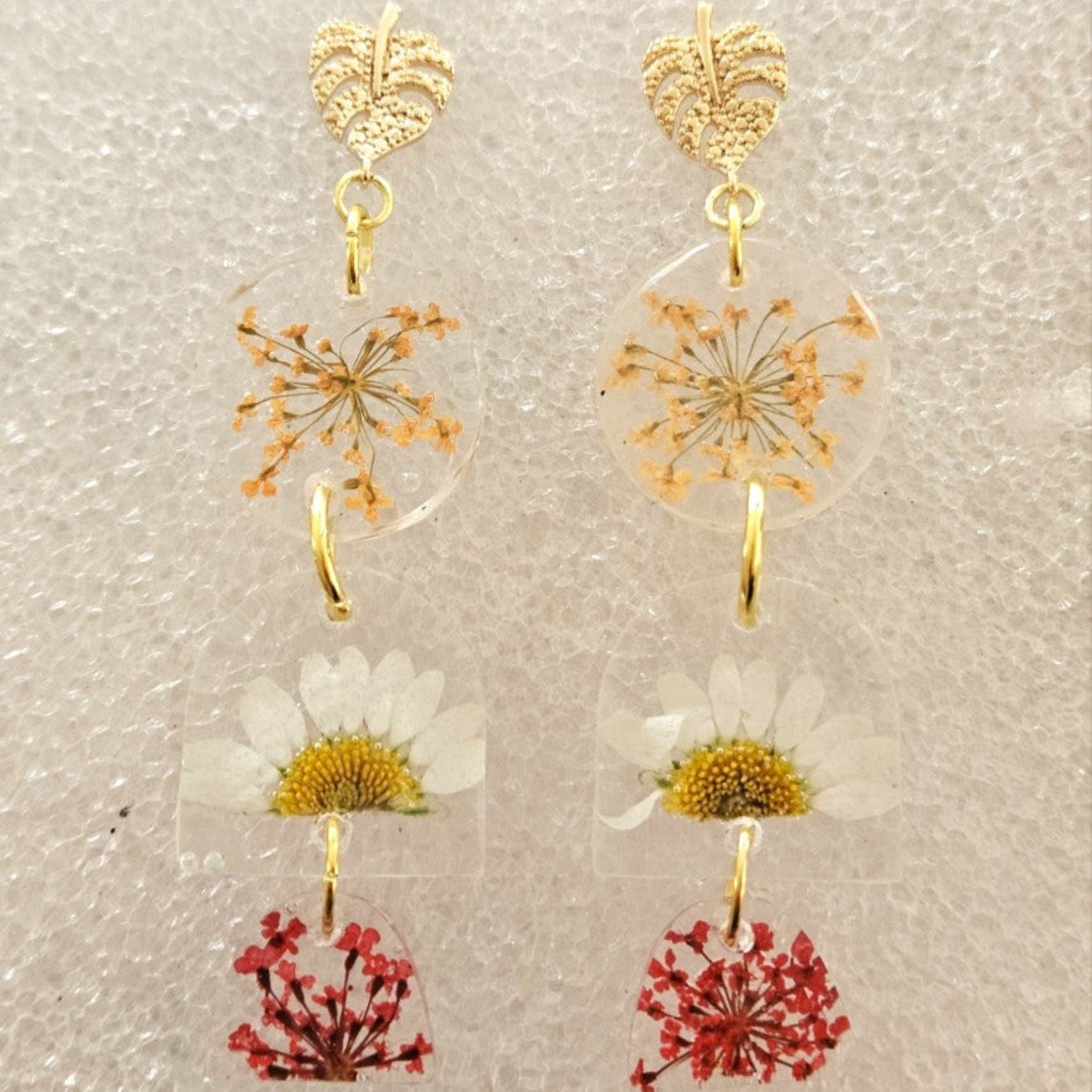 Beautiful sectional pressed flowers in resin.