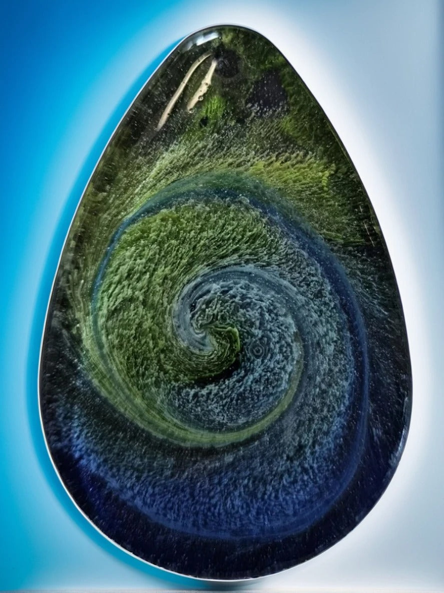 Teardrop Resin Petrie Cabachon Pendant - Navy and Yellow Green